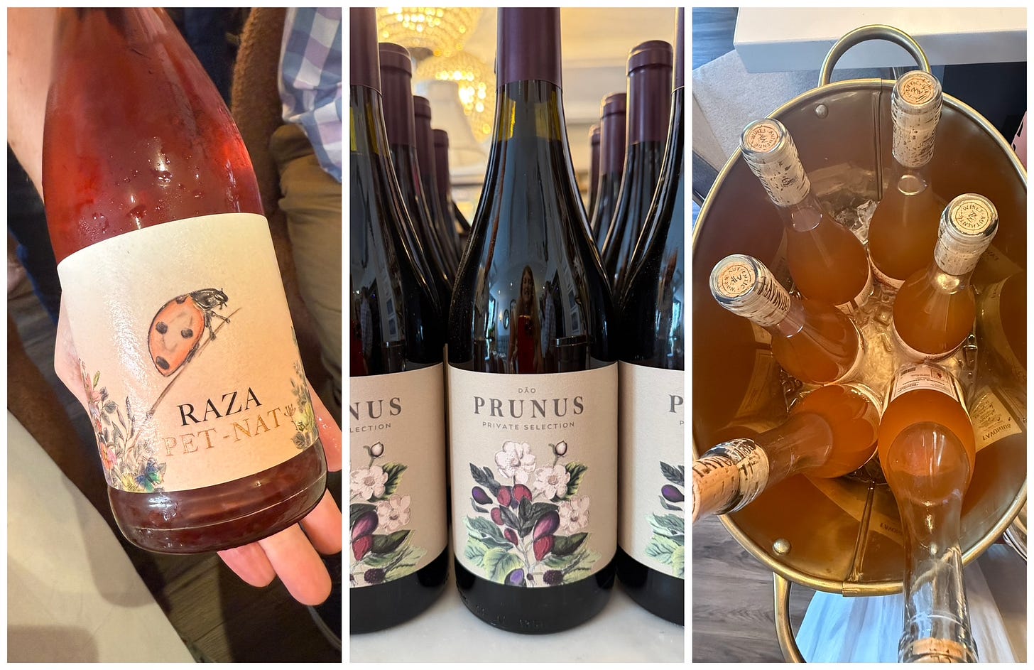 There was also a Pet-Nat Rosé (“is that a water-color paper label?” asked one guest, an artist). It was followed by a stand-out orange wine, and a light red by a producer, Natalia Jessa, who was quoted as saying, “Drink it, don’t overthink it.” The wines finished with a treat of a red from the Douro Valley and — since this is Europe we’re talking about — a tawny port.