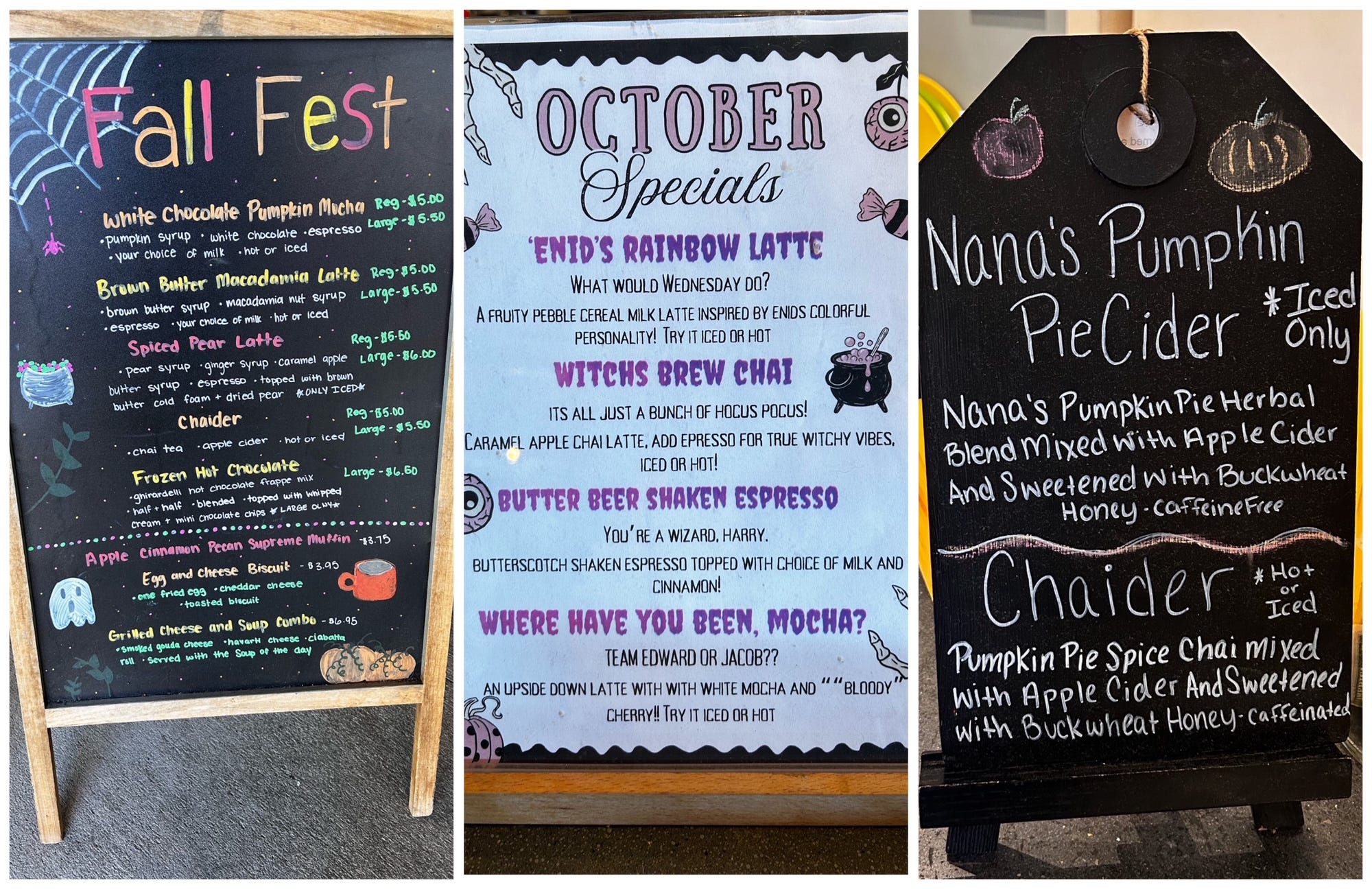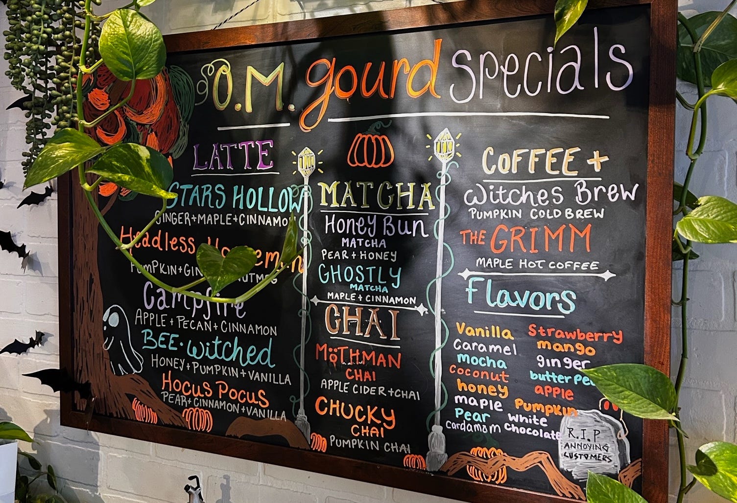 Broadway Coffee Co. arguably has the largest fall-themed menu, including lattes, matcha and chai beverages made with fall flavors. They also have seasonal coffee flavors including standouts Witches Brew pumpkin cold brew and The Grimm maple hot coffee