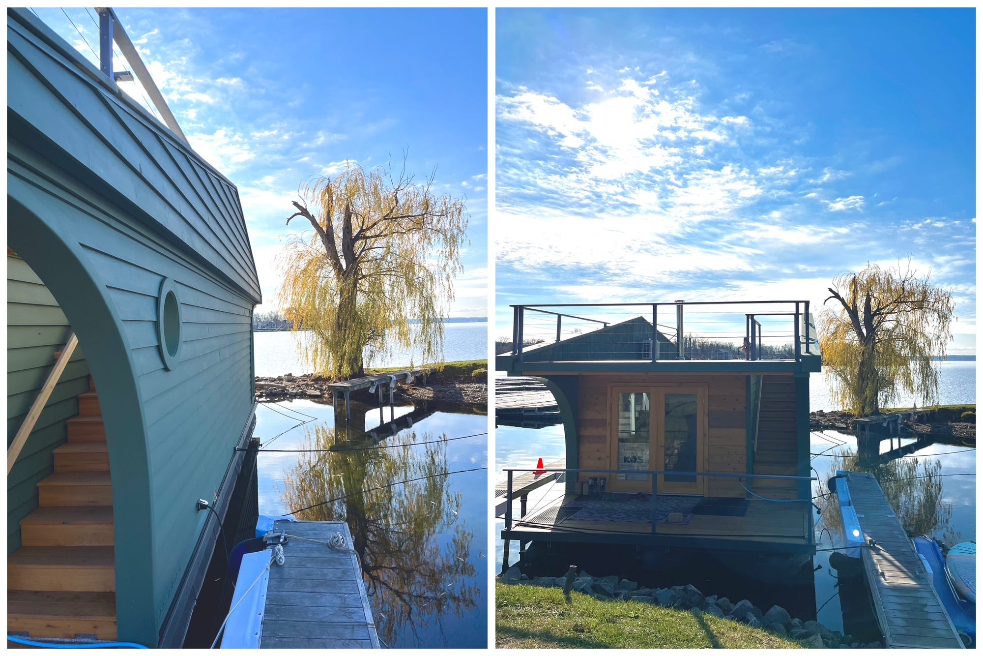 Walking in, you’re immediately enveloped by an all-encompassing warmth, like a hug from the inside out. The scent of cedar wood and custom-blended essential oils fills the air as you set up your towel and get comfortable in the 15-person sauna. Through the large triple-paned windows, Saratoga Lake stretches out before you, and it does, in fact, feel as though you are floating. As I settled in, I watched the reflection of the water dancing on the walls of the sauna. I closed my eyes as my skin began to feel slick and tiny beads of sweat rolled away… my worries going with them.