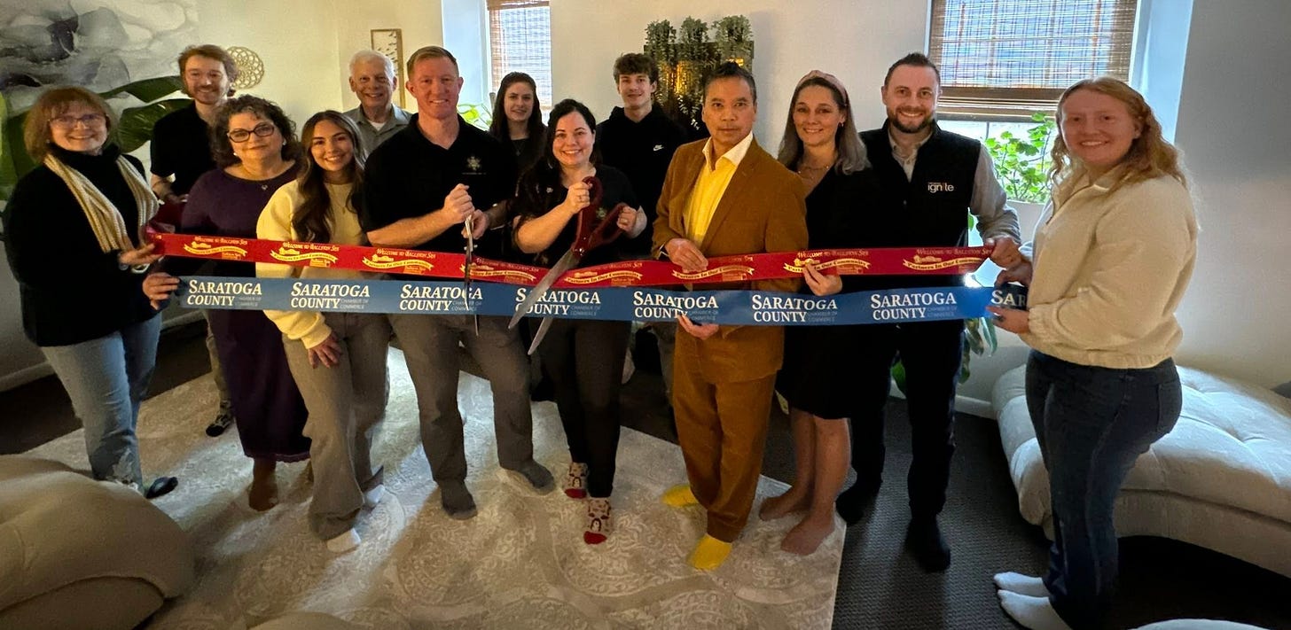 The Performance Sanctuary celebrated its grand opening at a ribbon cutting ceremony with the Saratoga County Chamber of Commerce. Located in Ballston Spa, the Performance Sanctuary was created to help individuals, couples, high-functioning professionals and organizations reclaim their sense of balance, power and purpose through integrative therapy, a cutting-edge performance spa, groups/classes and immersive workshops and retreats. So important — thank you!