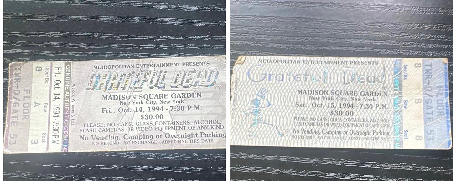 Since the great Bob Weir passed away Saturday, I did some light reach-out for any favorite Grateful Dead/Bobby stories from their many shows at SPAC. As it turned out, I ended up choosing one from Madison Square Garden; an Upstate Dispatch reader traveled there Oct. 14 and 15, 1994 — and ended up singing “Happy Birthday” to “Bobby” with about 15 of his closest friends.