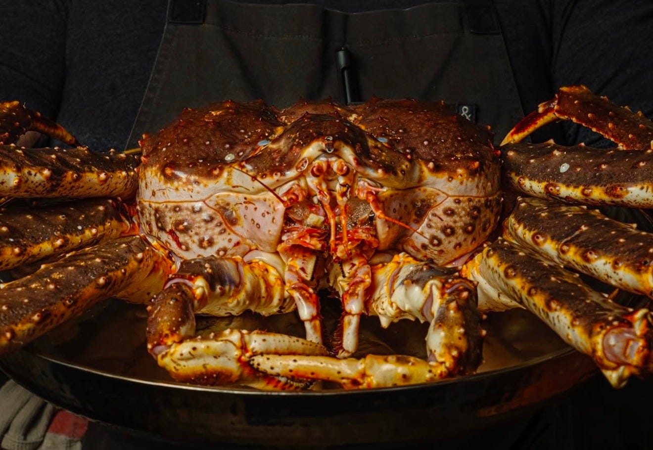 Now that’s a showstopper. “From Norway to 15 Church,” the newly revamped restaurant announced on Instagram over the weekend. “Live king crab is available by special request for parties and special occasions with advance notice.”