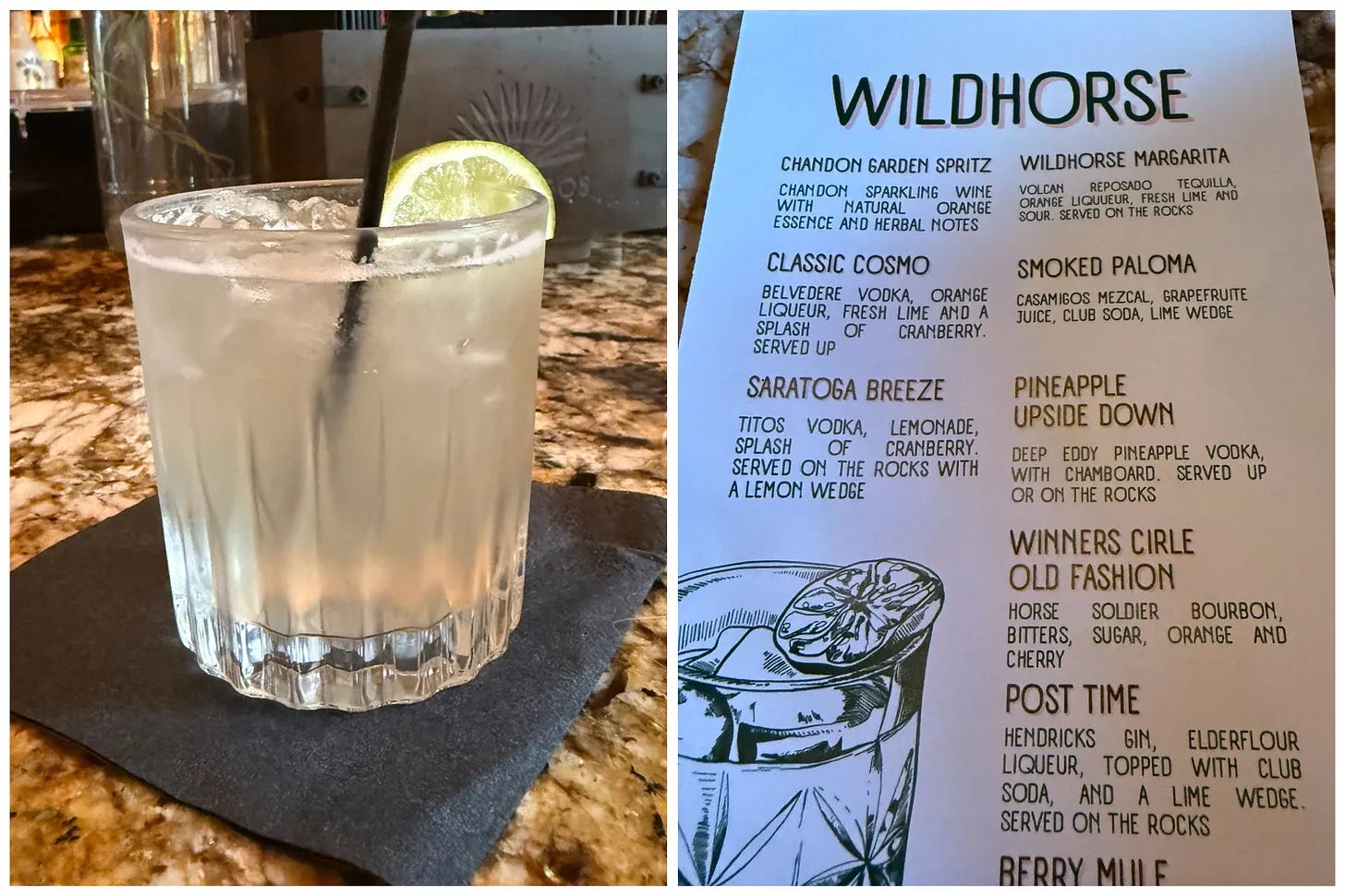 Moving onto the venue’s summer drink menu, Wild Horse’s refreshing cocktail “Post Time” is made with Hendricks gin, elderflower liqueur and club soda. They also offer the “Winners Circle Old Fashion,” with Horse Soldier bourbon, bitters, sugar, orange and cherry.