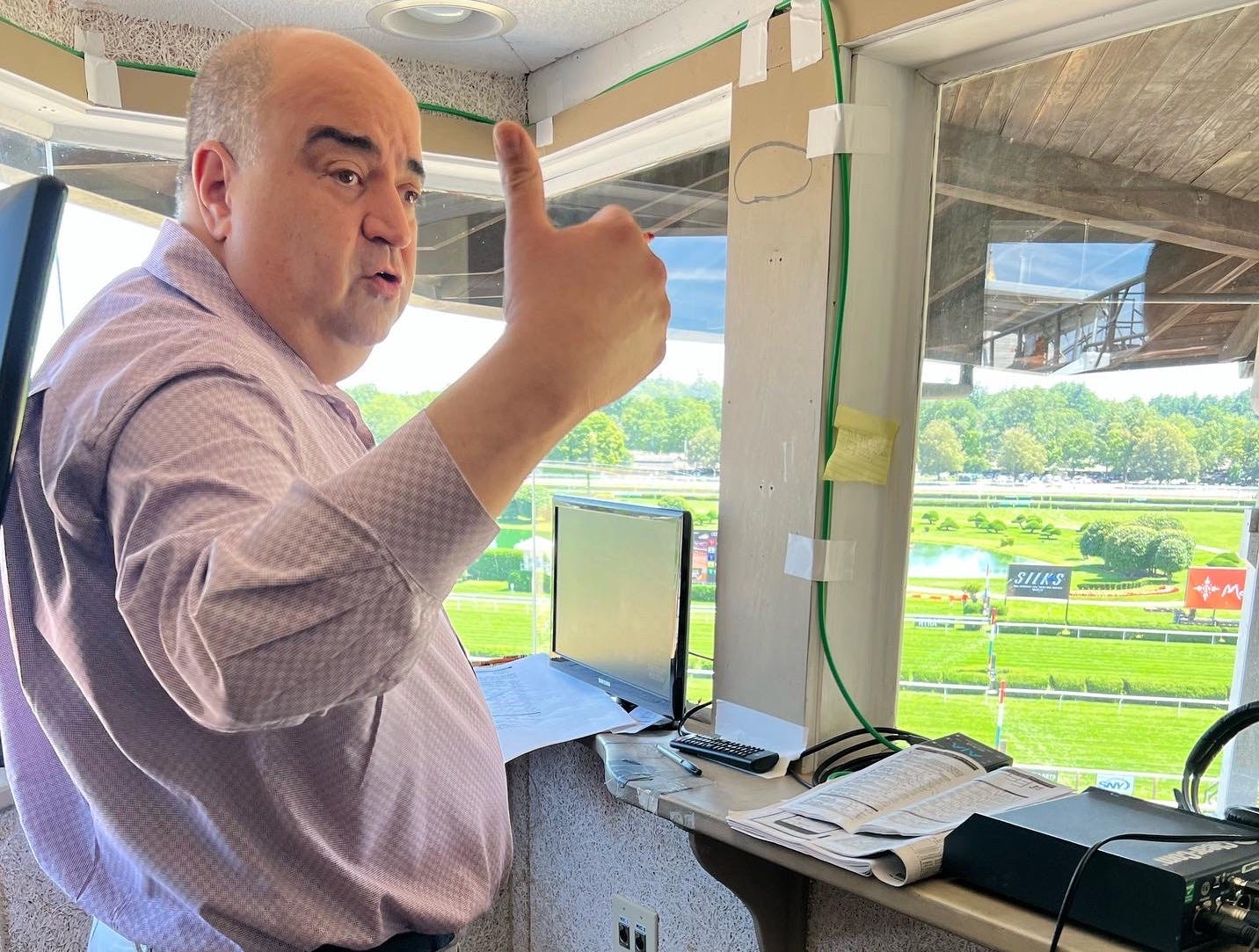 Saratoga track announcer Frank Mirahmadi’s brain is always on fire.