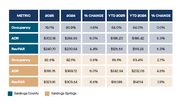 “These results reinforce the region’s reputation for delivering exceptional lodging performance and highlight Saratoga’s continued strength as a tourism destination,” the report says.