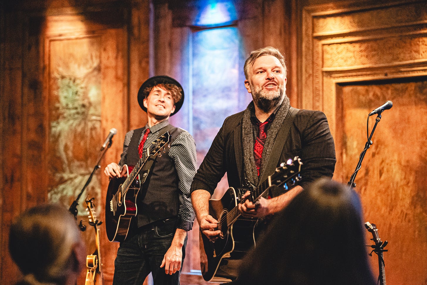 Get in the holiday spirit with Ryanhood, a high-energy duo that lands at Caffè Lena tomorrow night. “They started in Boston as a busking act in Faneuil Marketplace,” says the venue’s executive director, Sarah Craig. “And they really blew up, drawing these huge crowds that would come out. They had these perfect Simon Garfunkel-like harmonies and the ability to make this big soundscape with just a couple of guitars.” Now based in Arizona, Ryan David Green and Cameron Hood are touring a show based on their record On Christmas. “They have a big repertoire now of contemporary-sounding folk rock originals.” Craig says. “It’s a band that’s a lot closer to rock and pop than what most people would think of as folk. For their holiday show, they do smart, beautiful holiday songs that are seasonal but not syrupy or too familiar.” Maybe that’s why Zocolo magazine called the twosome “just the right blend of lyrical reverence, good cheer, and their usual superior musicianship.”