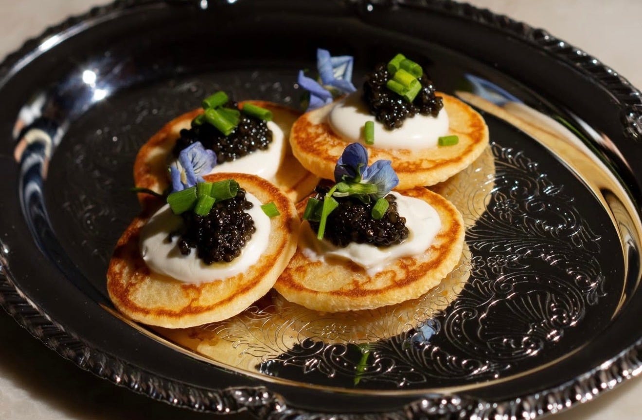 Sit-down, pre fixe goodness including choices like oysters, crab tots, pumpkin anolini, seabass, bourbon caramel brownie skillet and more — plus Champagne to ring in 2026 in style.