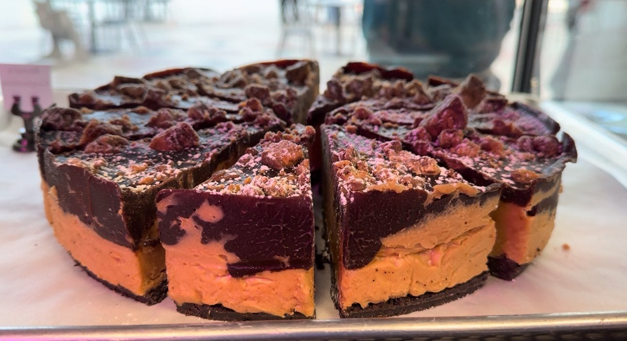 Our cookies of course! The Samoa Cheesecake (yes, tastes just like my favorite Girl Scout cookie) or our Peanut Butter Confection…all are unique offerings and secret recipes I have been working on for over 10 years, and they are amazing.